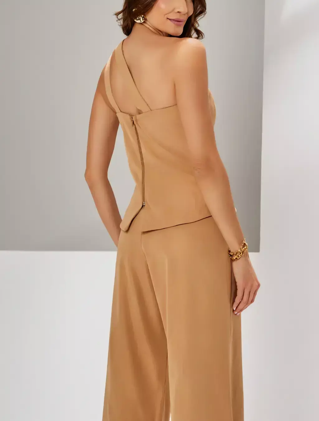 A Calça Julia é confeccionada em tecido plano com corte de alfaiataria moderna, unindo elegância e conforto em uma modelagem impecável. O recorte frontal com fenda estratégica adiciona movimento e um toque contemporâneo à peça, enquanto o fechamento frontal com zíper e colchete garante praticidade e acabamento refinado. Ideal para composições sofisticadas que transitam do dia à noite com estilo.