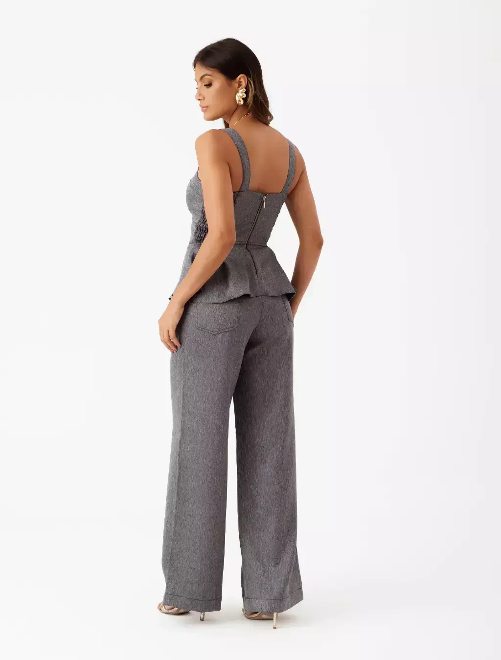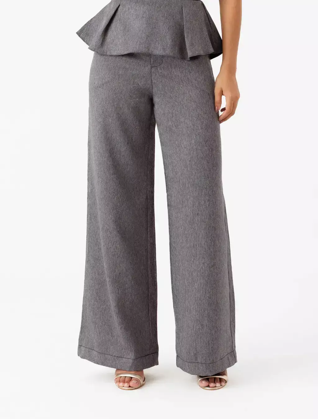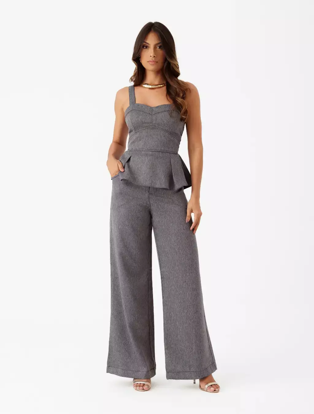 A Calça Lorenza é a tradução do estilo casual sofisticado. Confeccionada em tecido plano de fibra sintética com visual denim, apresenta modelagem reta, proporcionando caimento elegante e atemporal. Possui bolsos faca na parte frontal e bolsos aplicados nas costas, além de pespontos aparentes que valorizam o design da peça. O fechamento com botões tingidos adiciona um toque moderno e harmoniza com o visual denim, tornando a calça perfeita para composições versáteis e cheias de estilo.