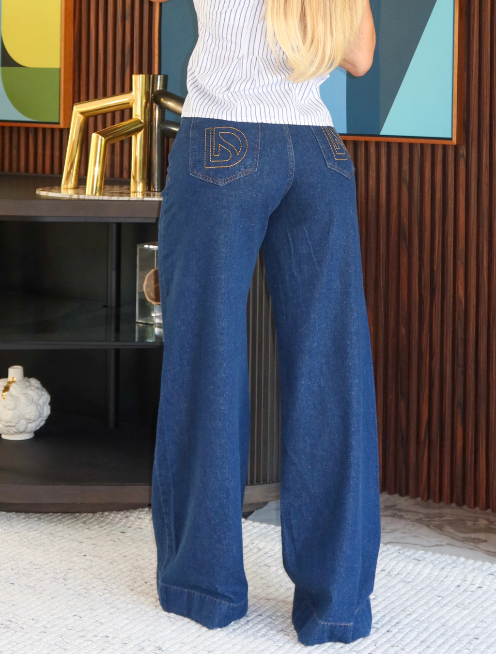 A Calça Lysa é a definição de elegância descomplicada. Com modelagem pantalona que valoriza a silhueta, ela une conforto e estilo em um jeans de lavagem escura, perfeito para composições sofisticadas ou despojadas. Os bolsos frontais ganham destaque com o pesponto marcado e o monograma exclusivo da Delise, agregando identidade e charme à peça.
