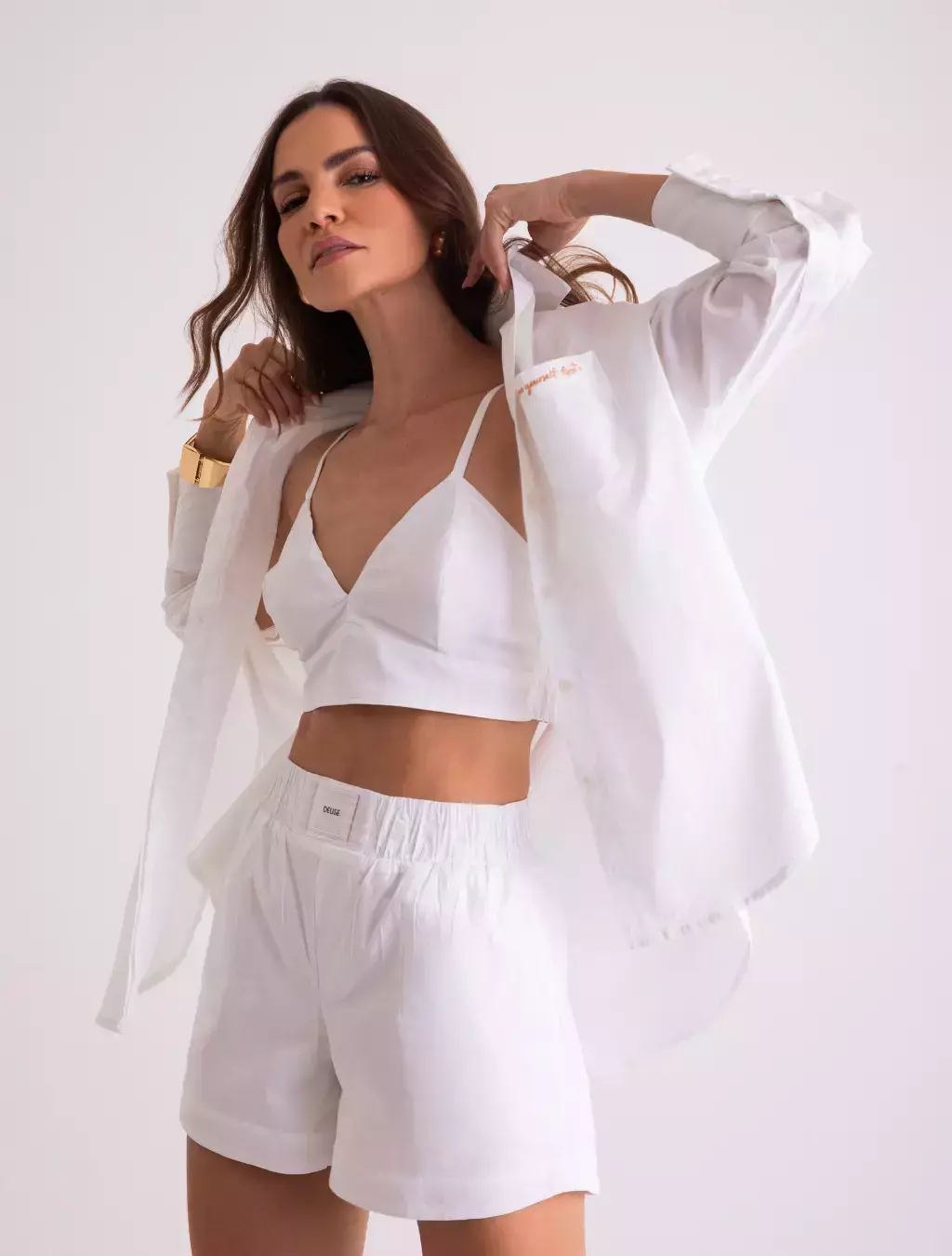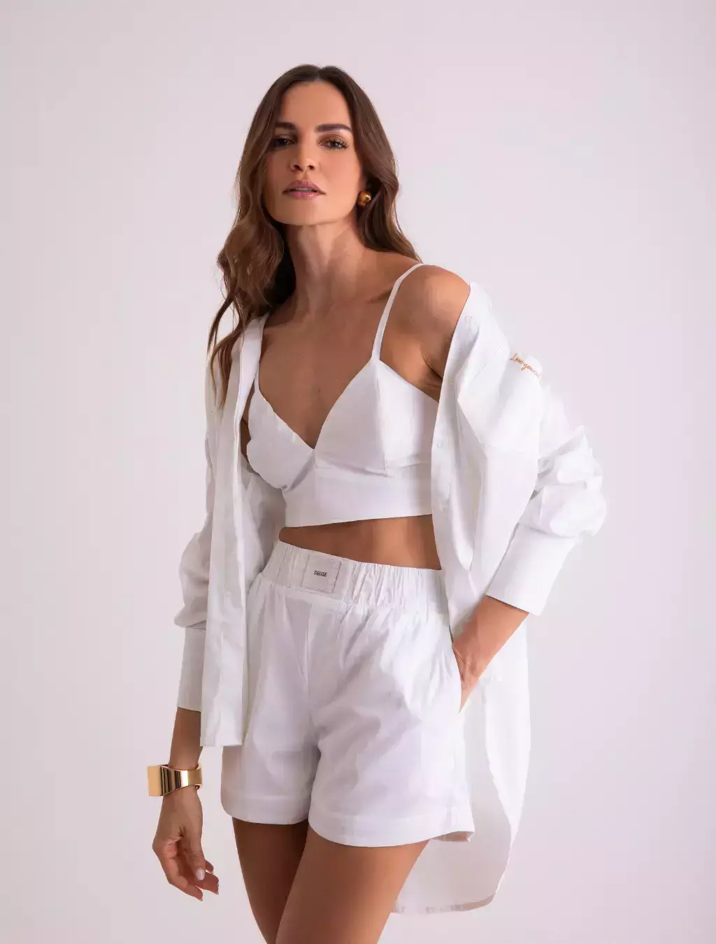O Top Guga une conforto e estilo em uma peça versátil e moderna. Confeccionado em tricoline 100% algodão, apresenta decote elegante, alças reguláveis e fechamento em zíper nas costas. Os elásticos estrategicamente posicionados garantem ajuste perfeito ao corpo, proporcionando liberdade de movimento e caimento impecável.