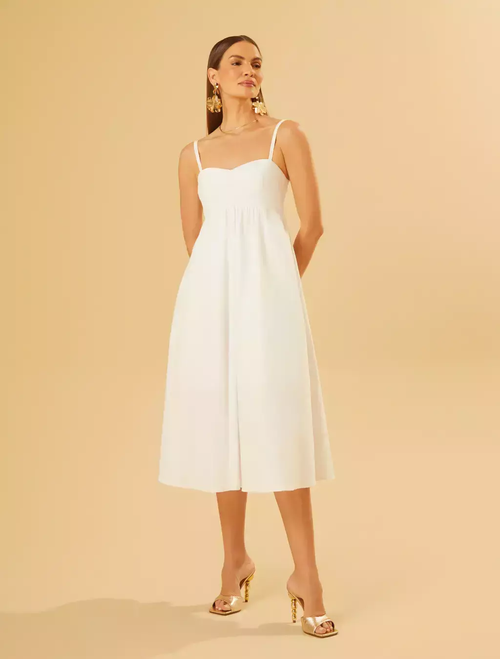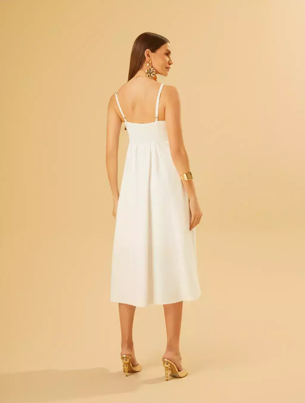 O Vestido Cora é confeccionado em algodão com textura de linho, unindo o frescor do algodão ao visual sofisticado do linho. O busto estruturado com recortes valoriza o colo com elegância, enquanto as alças ajustáveis permitem melhor encaixe ao corpo. As costas ajustavel com elástico (elastex) nas costas, garantindo mais conforto e adaptabilidade na hora de vestir. A saia rodada com franzidos abaixo do busto cria movimento e romantismo, resultando em uma peça leve, feminina e perfeita para os dias mais delicados.