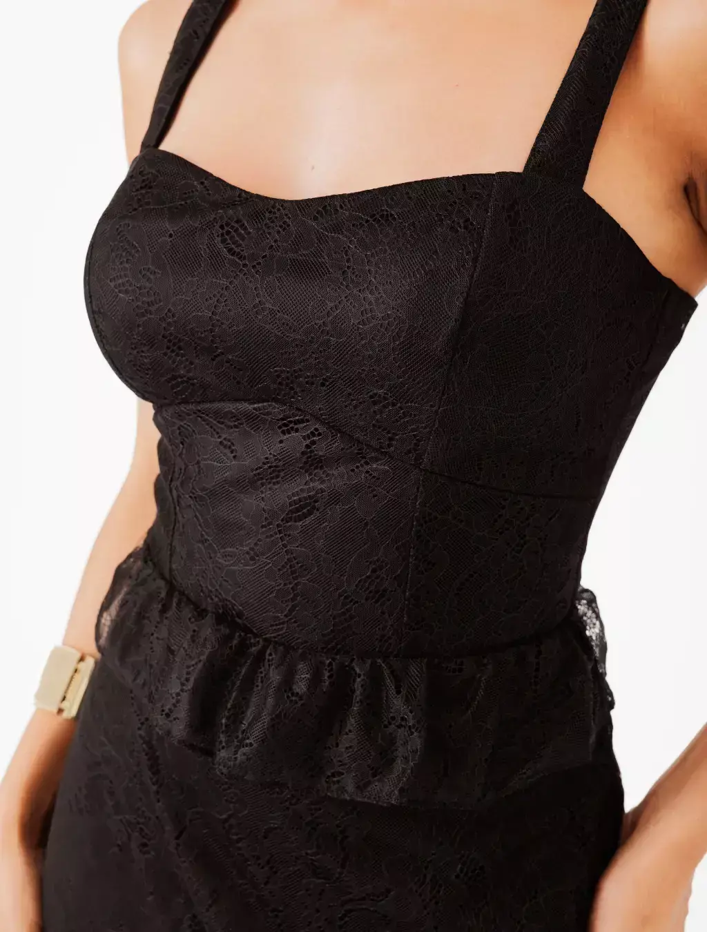 O Vestido Mayra é a expressão perfeita da feminilidade e elegância. Confeccionado em renda delicada, o modelo conta com busto estruturado e decote levemente em coração, realçando o colo de forma sutil e sofisticada. As alças largas garantem conforto e sustentação, enquanto os babados ao longo de todo o comprimento trazem movimento e romantismo à peça. A leve transparência abaixo do joelho adiciona um toque de leveza e modernidade, tornando o vestido ideal para ocasiões especiais.